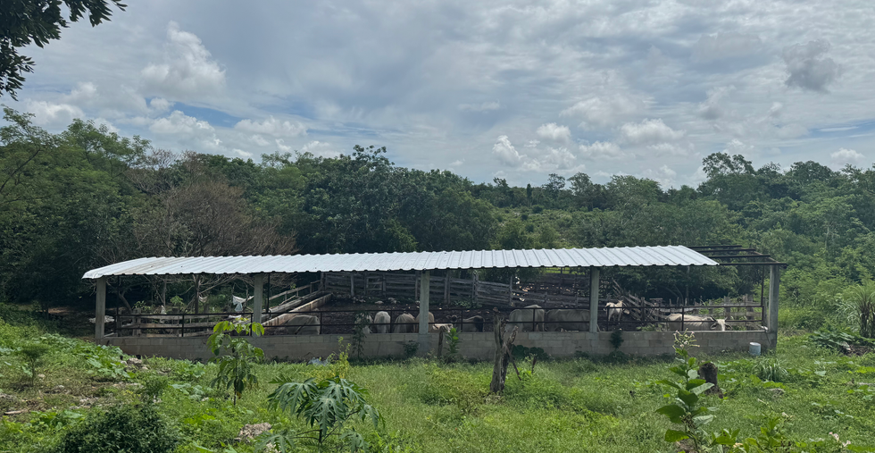 This lot has a small section along the driveway that has been cleared and planted with corn, squash and other edible crops. Just beyond this area is a cattle pen and beyond that, virgin jungle with enormous, old-growth trees. The lot is only a few hundred meters off the main road - but far enough to feel very private and secluded. This property is perfect for building a gorgeous house and having a ranch with animals and crops.
